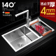 阿萨斯欧式4MM加厚304不锈钢手工水槽套餐双槽厨房洗菜盆 超大型