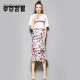 套装夏女新款两件套韩版字母T恤碎花雪纺半身裙中长款鱼尾裙清新