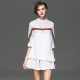 2017春装新款名媛立领中袖蕾丝拼接波点雪纺连衣裙夏季宽松蛋糕裙