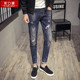 秋冬日韩潮流男士修身型小脚韩版破洞牛仔裤男显瘦青年休闲乞丐裤