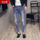 春季新款男士修身破洞小脚牛仔裤男微弹休闲青年学生装牛仔长裤潮