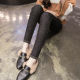 排扣大码雪花牛仔裤 韩版外穿打底裤女黑色小脚裤铅笔裤休闲长裤