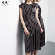 绾桑 2017春装新欧洲站优雅竖条纹短袖腰带 重磅真丝连衣裙 长裙