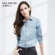 纯棉浅色牛仔衬衫女长袖 休闲百搭修身显瘦中长款衬衣 春秋牛仔衫