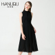 2017春夏季新款欧美女装收腰系带无袖网纱性感中长型连衣裙小黑裙