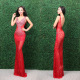 2017欧美新款亮片敬酒服露背年会长款礼服性感连衣裙鱼尾裙H0717