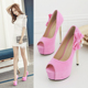 秋季超高跟单鞋女性感蝴蝶结串珠新款韩版防水台细跟鱼嘴单鞋夜店