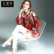 露肩真丝雪纺衫女遮肚长袖宽松娃娃衫 碎花裙摆上衣桑蚕丝夏2017
