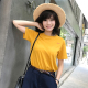 夏季新款黄色棉质短袖T恤女圆领小黄Tee宽松显白芒果色体恤上衣