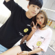夏装韩国学院风字母情侣笑脸表情印花短袖T恤男女学生闺蜜装班服