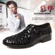 英伦商务尖头正装皮鞋男士鳄鱼纹系带婚鞋时尚男鞋子韩版潮男皮鞋