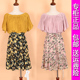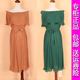 雅诗YS-9938正品2017夏季新款露肩一字领拼接雪纺百褶碎花连衣裙
