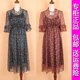 正品2017春装新款时尚印花V领中长款雪纺拼接连衣裙湘之秀17C-038