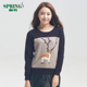 春竹新款羊毛衫提花图案圆领套头毛衣女修身打底衫