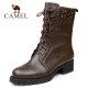Camel/骆驼正品马丁靴女鞋 2015冬季新款系带高筒靴 真皮平跟女靴