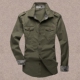 男加大码纯棉长袖衬衫春秋军旅风双口袋衬衣纯色休闲百搭内衬工装