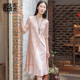 漓布衣2016夏装新款V领真丝两件套连衣裙透视短袖桑蚕丝中裙轻薄