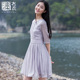 漓布衣2016夏装新款棉麻拼接下摆真丝连衣裙圆领七分袖文艺高腰裙