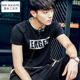 夏季男士短袖t恤圆领假两件运动学生半袖打底衫薄款体恤汗衫韩潮