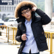 沃衫御寒短款加厚修身可脱卸帽大码黑色冬保暖休外套潮羽绒服男