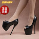 恨天高欧美鱼嘴16CM凉鞋超高跟细跟防水台夜店白色婚鞋漆皮女单鞋