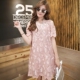 胖mm镂空裙子2017大码女装夏季新款胖妹妹藏肉圆领短袖显瘦连衣裙