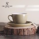 潮宋瓷色釉陶瓷咖啡杯碟欧式拿铁杯蜡光陶瓷杯红茶杯300ml橄榄绿