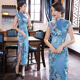 旗袍2017新款丝绸复古改良修身中长款旗袍连衣裙夏宴会表演礼服女