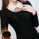 冬装加绒蕾丝打底衫女时尚显瘦加厚保暖立领打底衫修身上衣大码