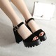 韩版坡跟凉鞋女夏2017新款鱼嘴蕾丝百搭性感松糕厚底防水台高跟鞋
