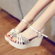 2017新款波西米亚凉鞋女夏坡跟民族风绑带显瘦百搭高跟罗马沙滩鞋