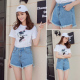 2017夏季新款韩版高腰浅蓝牛仔短裤女学生毛边宽松显瘦阔腿热裤潮