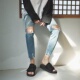 小呆家 MCC 春夏新款~膝盖破洞九分牛仔裤男 文艺范男潮牛仔裤