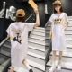 夏装韩版小鸟卡通图案印花短袖纯棉宽松中长款t恤女裙学生韩国潮