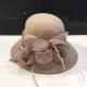 秋冬新款英伦风麻纱花朵羊毛呢礼帽子圆顶大檐盆帽女士渔夫帽