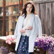 夏季新款女装中长雪纺衫蕾丝衫大码修身印花衬衫中袖天丝棉防晒衣