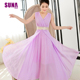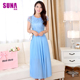 尚纳春夏装新款 雪纺连衣裙 淑女气质 百褶裙长裙女