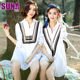 尚纳 韩版正品夏季修身短袖雪纺裙蕾丝百褶裙娃娃领短连衣裙A