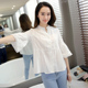 2016夏新款宽松七分袖V领棉麻衬衫女 喇叭袖流苏上衣女潮衬衣