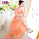 尚纳夏季甜美新品雪纺修身连衣裙蕾丝大摆裙女长裙子O
