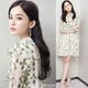 夏新品性感V领气质雪纺印花中长款连衣裙 修身显瘦真丝公主裙短裙