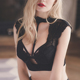 黑色性感露乳诱惑女士内衣蕾丝深V薄杯背心美背钢圈聚拢文胸套装
