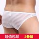 3条装冰丝网纱条纹内裤男士三角裤低腰透明内裤U凸囊袋透气性感