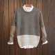 SOYISU原创拼接撞色加厚毛衣圆领男士复古情侣装秋冬针织衫线衣潮