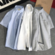 SYS夏季原创牛津纺短袖纯棉纯色休闲男士白衬衫余文乐修身衬衣潮
