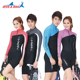 男女情侣潜水服连体防晒服水母衣浮潜服 带胸垫带帽子长袖游泳衣