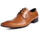 个性潮流尖头系带男士商务正装皮鞋英伦韩版真皮修身透气男鞋酒红