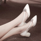 单鞋女浅口粗跟鞋女单鞋中跟2017春夏新款真皮尖头鞋百搭女鞋子女
