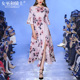 2017春装新品欧美走秀款时尚气质修身印花V领大摆A字长裙连衣裙潮