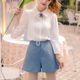 特价! 秋装新款韩版清新百搭蓝色宽松阔腿裤休闲短裤热裤女
